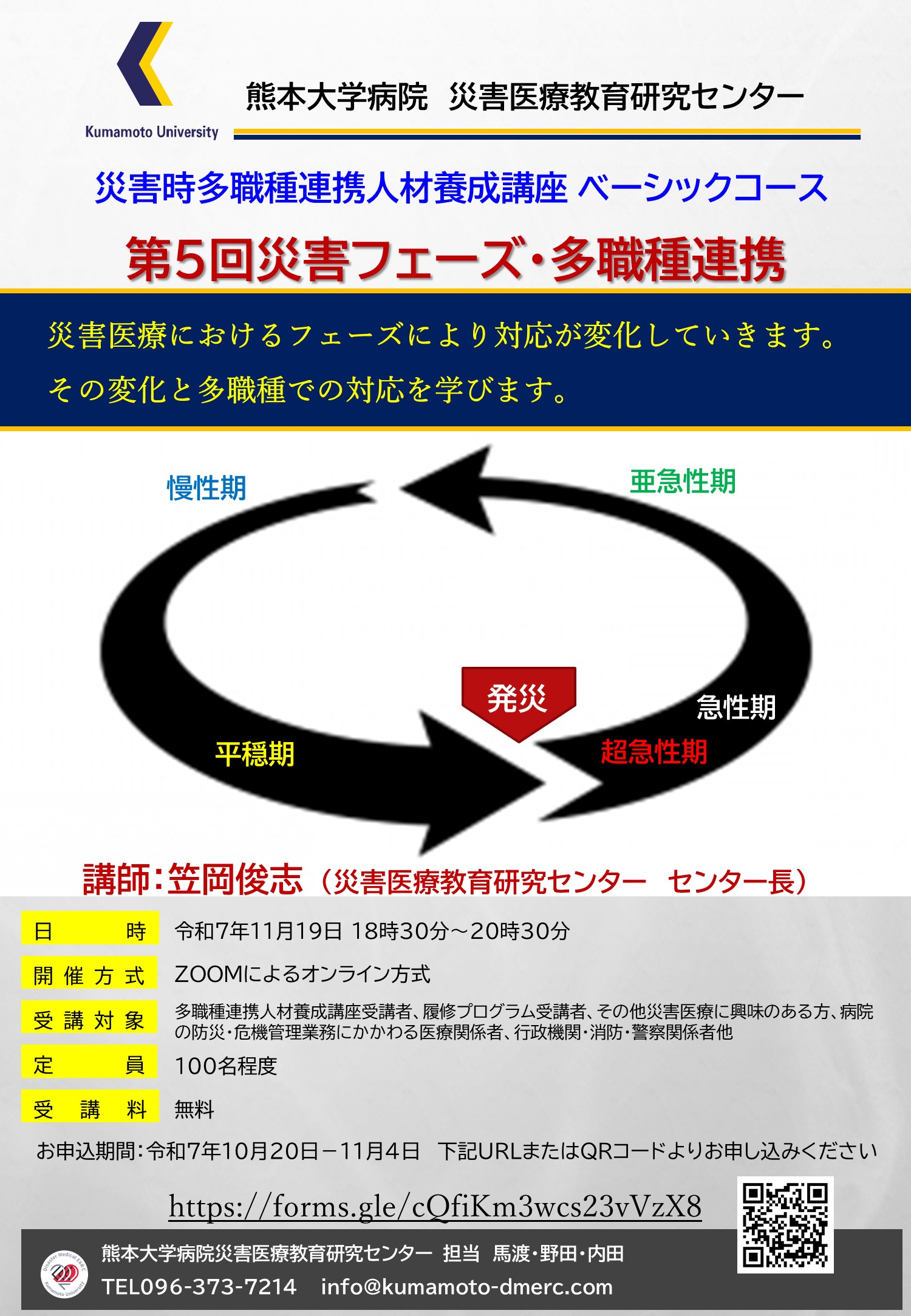 - 第5回災害時多職種連携人材養成講座ベーシックコース「災害フェーズ・多職種連携」